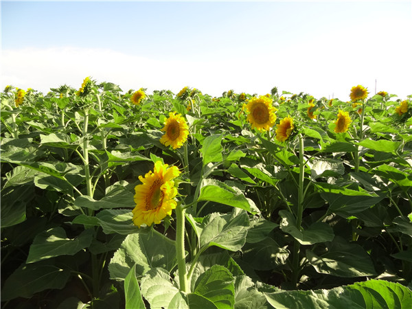 4、適期灌水,向日葵苗期耐旱,以中耕鋤草保墑促根壯苗為主,現(xiàn)蕾后要及時(shí)灌水,追肥,在成熟期灌水,要避開大風(fēng),避免倒伏。